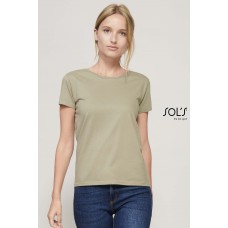 95% cotone ring spun, 5% elastane. single jersey. T-shirt manica corta set-in, ampio scollo a V con costine, etichetta strappabile, struttura con cuci..