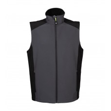 92% poliestere, 8% elastane. Giacca smanicata a 3 strati in softshell, traspirante, resistente a vento e acqua. Tasche laterali e sul torace con rives..